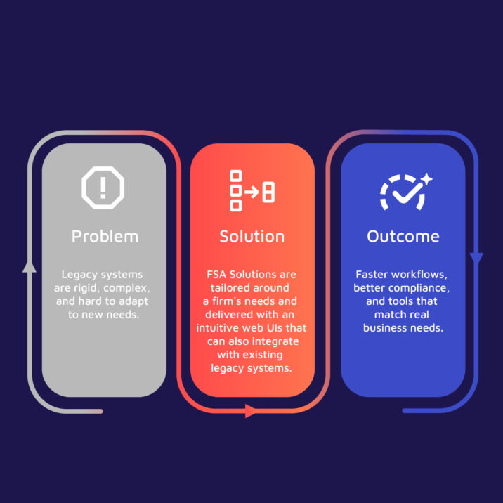 Legacy products and vendors cater for the most common requirements with a rigid offering, leaving a long tail of needs unattended. Solutions is a modern technology stack and a partnership model that can be used to fill the efficiency and compliance void left.