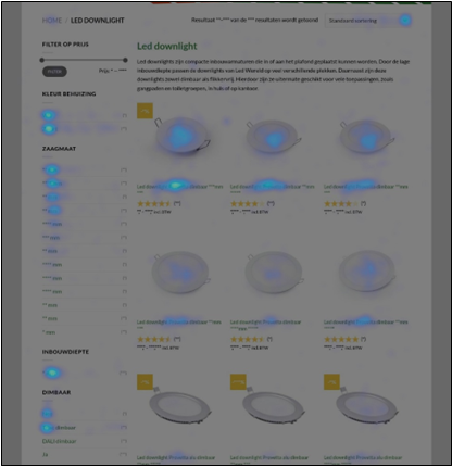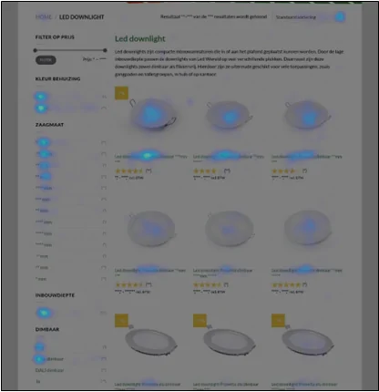 We zien het heel vaak gebeuren: een categoriepagina waar banners of andere visuele uitingen alle ruimte boven de vouw innemen waardoor het overzicht aan producten naar onderen wordt gedrukt. Terwijl bezoekers juist op jouw webshop op zoek zijn naar een bepaald product omdat zij verwachten dat daar te kunnen vinden. Om je bezoekers vast te houden is het daarom van belang hen direct het gevoel te geven dat hun verwachting juist is. Doe dit door de producten op jouw webshop ook daadwerkelijk te laten zien. En dan het liefste boven de vouw. Scrollmap data laat namelijk keer op keer zien dat bezoekers nauwelijks scrollen, wat aangeeft dat informatie boven de vouw moet motiveren op de webshop te blijven. Zorg ervoor dat er minimaal één rij producten (deels) boven de vouw te zien is.