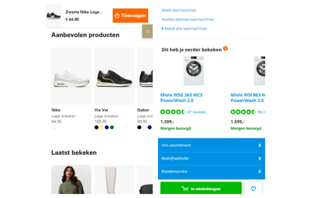 Ook tonen niet alle webshops de eerder bekeken producten van een gebruiker. Tijdens het shoppen en vergelijken is dat een belangrijke functionaliteit om weer terug te gaan naar een vorig product.