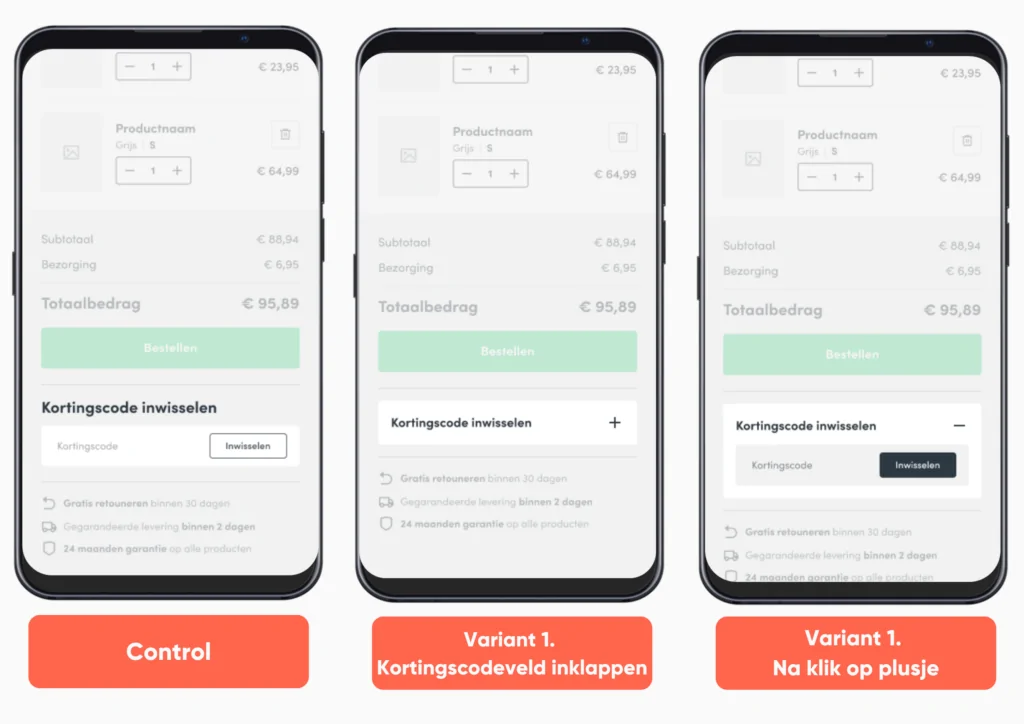 Bovenstaande inzichten laten zien hoe belangrijk het is om aanpassingen in je webshop, groot of klein, te A/B testen. Wanneer je op onderbuikgevoel elementen aanpast in een webshop, loop je risico op omzetverlies zonder dat je dat als organisatie doorhebt. Wil je ook het kortingscodeveld in je webshop A/B testen? Met deze drie tips test je succesvol: