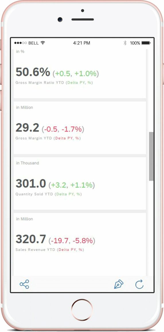 Com o SAP Analytics Cloud, aumenta a maturidade do seu business intelligence. Graças à ligação em tempo real, obtém os seus números em tempo real e pode analisar dados importados de forma de alto desempenho com a tecnologia in-memory da plataforma HANA. Na visualização, pode partilhar dashboards simples, utilizar padrões como o IBCS ou criar e personalizar as suas próprias aplicações com o Application Designer. Além disso, com o Smart Insights e o Smart Discovery, estão disponíveis várias funções de aprendizagem automática, que fornecem análises adicionais.
